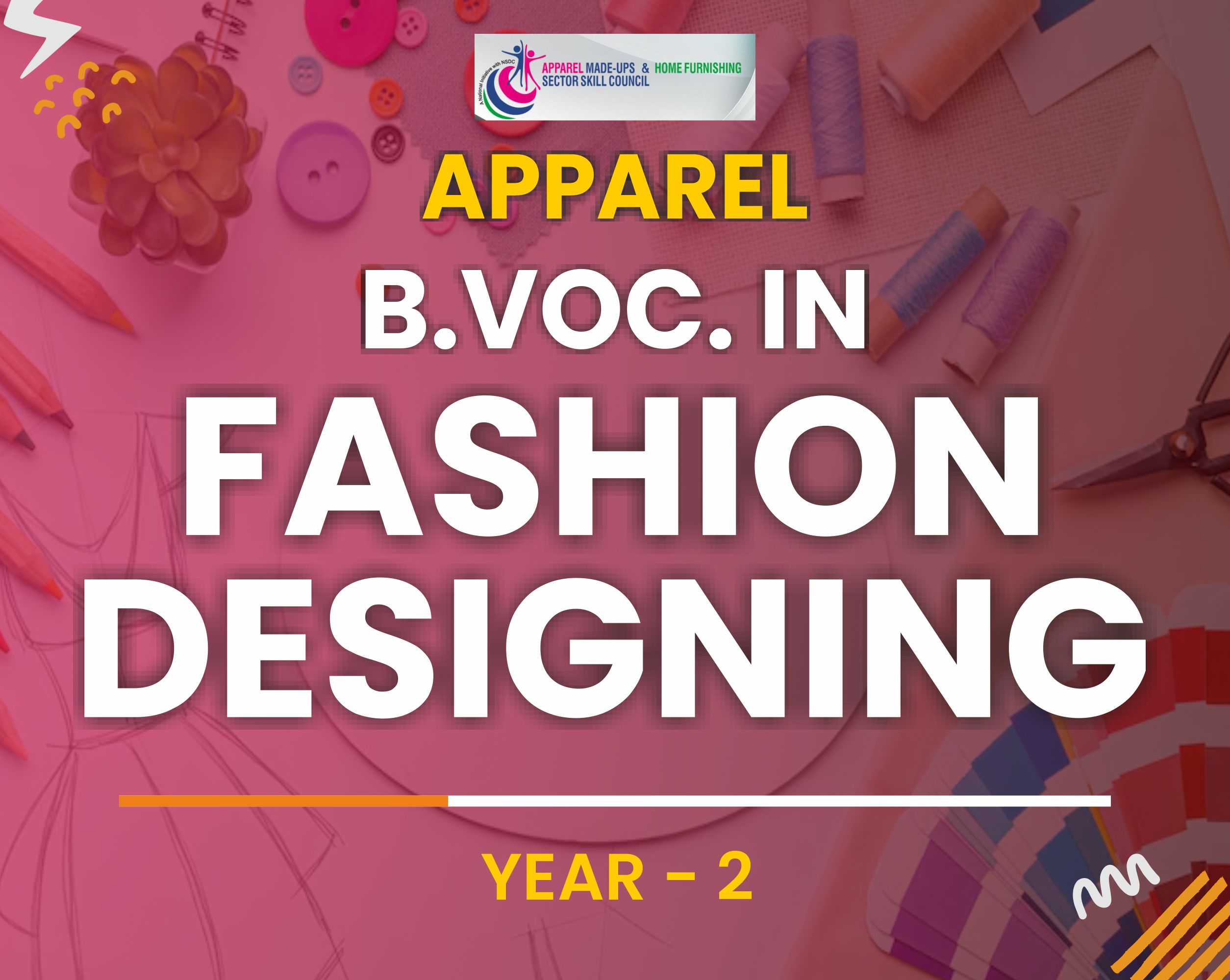 Bachelor of Vocation in Fashion Designing, is an undergraduate degree program with multiple exits such as Diploma /Advanced Diploma relating to apparel manufacturing. This program is designed to provide students with practical training and industry exposure to prepare them for a career in the fashion industry. The program covers various aspects of fashion design, including garment construction, textile selection, fashion illustration, pattern-making, draping, and marketing strategies. The course would provide adequate knowledge and skills for employment in the apparel industry.